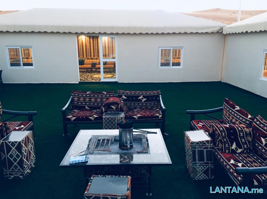 مخيمات فخمة وراقية في الثمامة بعد نقطة التفتيش مجهزة بكل احتياجات الأسرة من دورات مياه فخمة ونظيفة ومطبخ وألعاب أطفال ومشب وعدة مجالس وغيرها ..