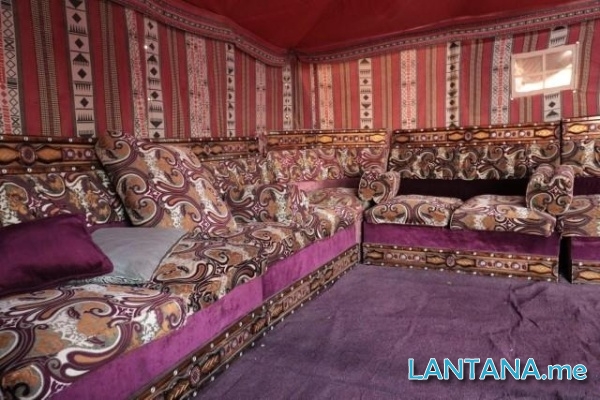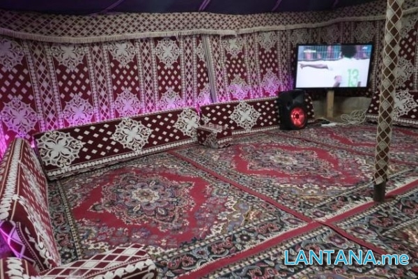 - بيت شعر مجهز بالمشب وتلفزيون - خيمة عمودين جلوس مفروشة فرش وكنب - مطبخ - دكة - جلسة عريش