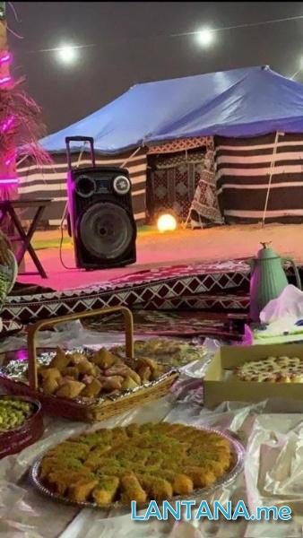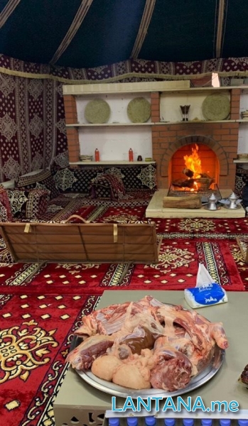 بيت شعر ملكي - خيمة للطعام - مطبخ مجهز بالكامل - جلسة خارجية ( دكة ) - منقل شوي
