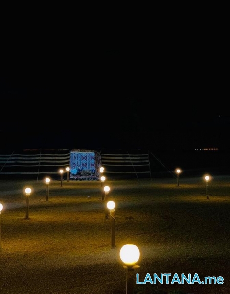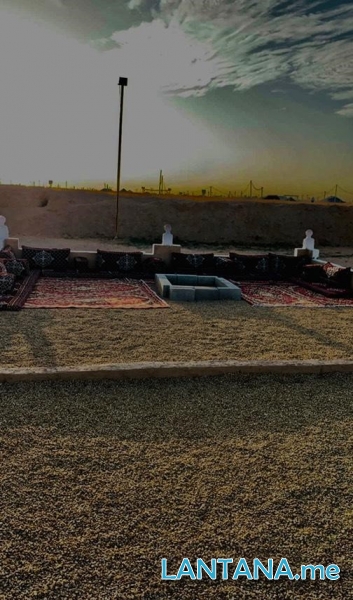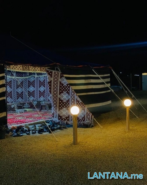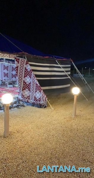 المخيم مكون من قسمين بمساحة كبيرة على ارض رملية يسهل دخول السيارات الصغيرة