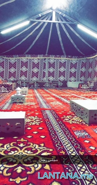 بيت شعر ملكي كبير - خيمة للطعام - غرفة مجهزة بجلسة عربية - مغاسل - منقل شوي دكة خارجية