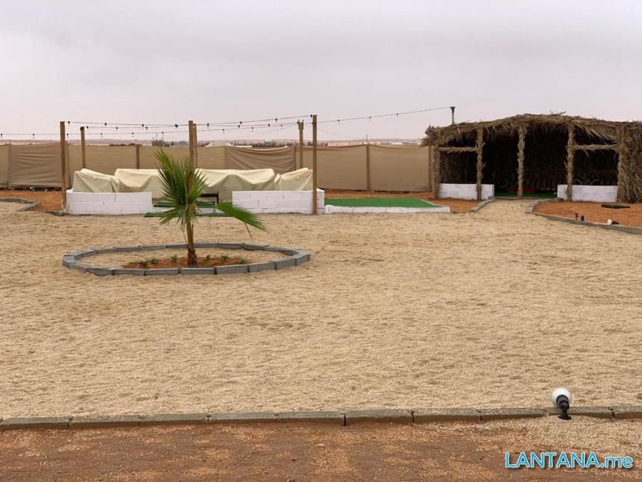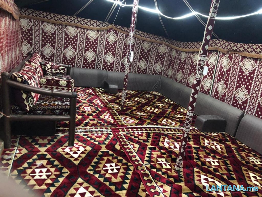 بيت شعر- دكة ارضية - بيت شعر ثاني - دكة ارضية - مطبخ - منقل للنار كبير