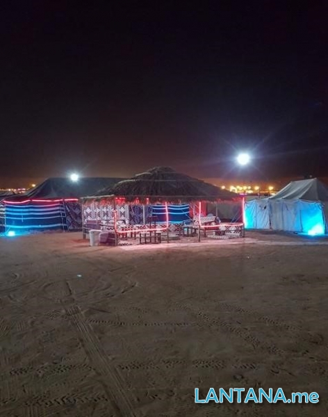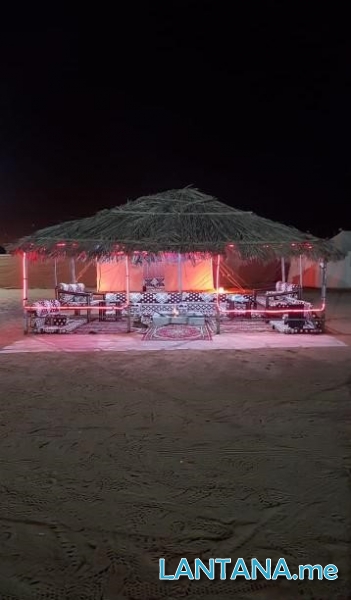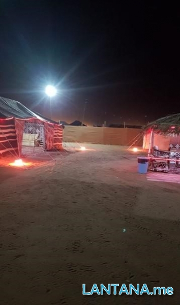 بيت شعر رئيسي على مساحة (13x6) م للنساء وآخــر للرجــال مساحة (13x6) م مع تلفزيون مع جميع القنوات