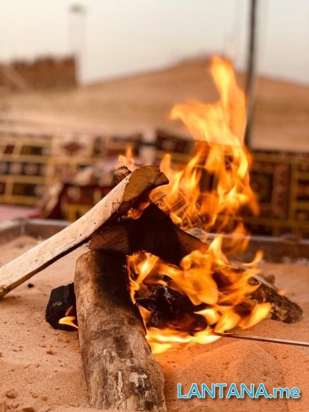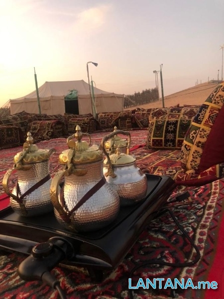 المخيم يحتوي على خيمتين للرجال و كذلك خيمتين للنساء