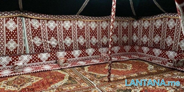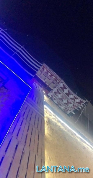 بيت شعر عمودين - خيمة عمودين - دكة خارجية مع بروجكتر - عريشه خارجية - مطبخ - دورة مياه - برميل مندي