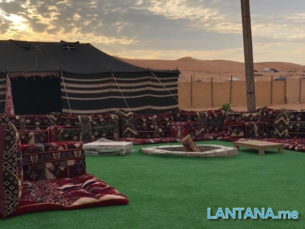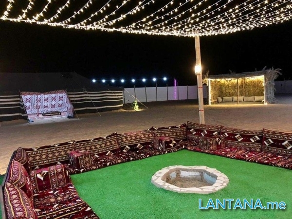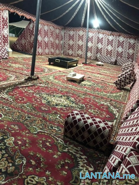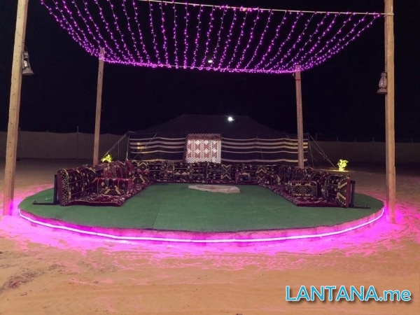 بيت شعر 6*12 - خيمه عمودين - جلسة عريش - دكة خارجية مع اثاث جديد ومشب للنار حجر- مطبخ مع اسطوانة غاز +قز عينين